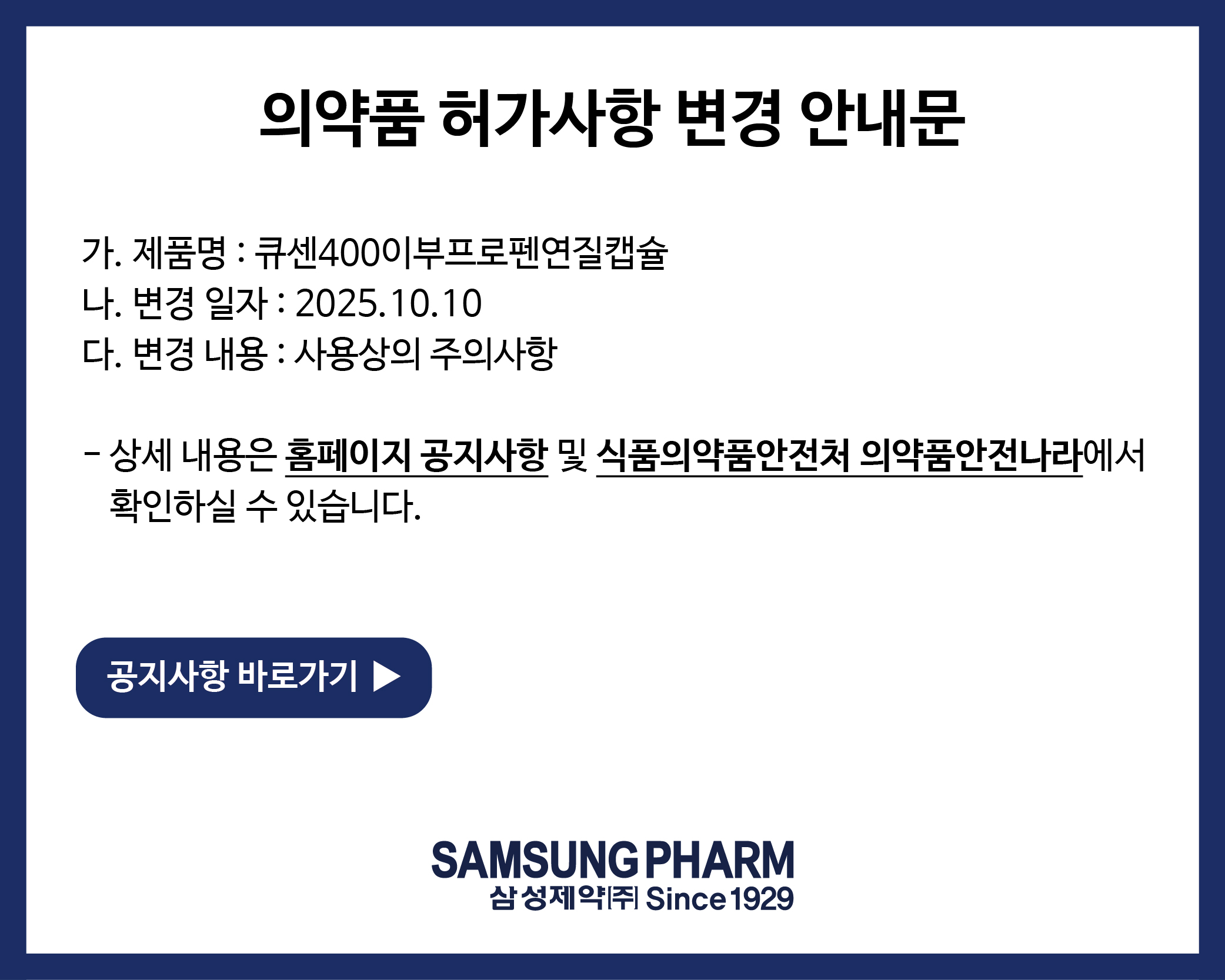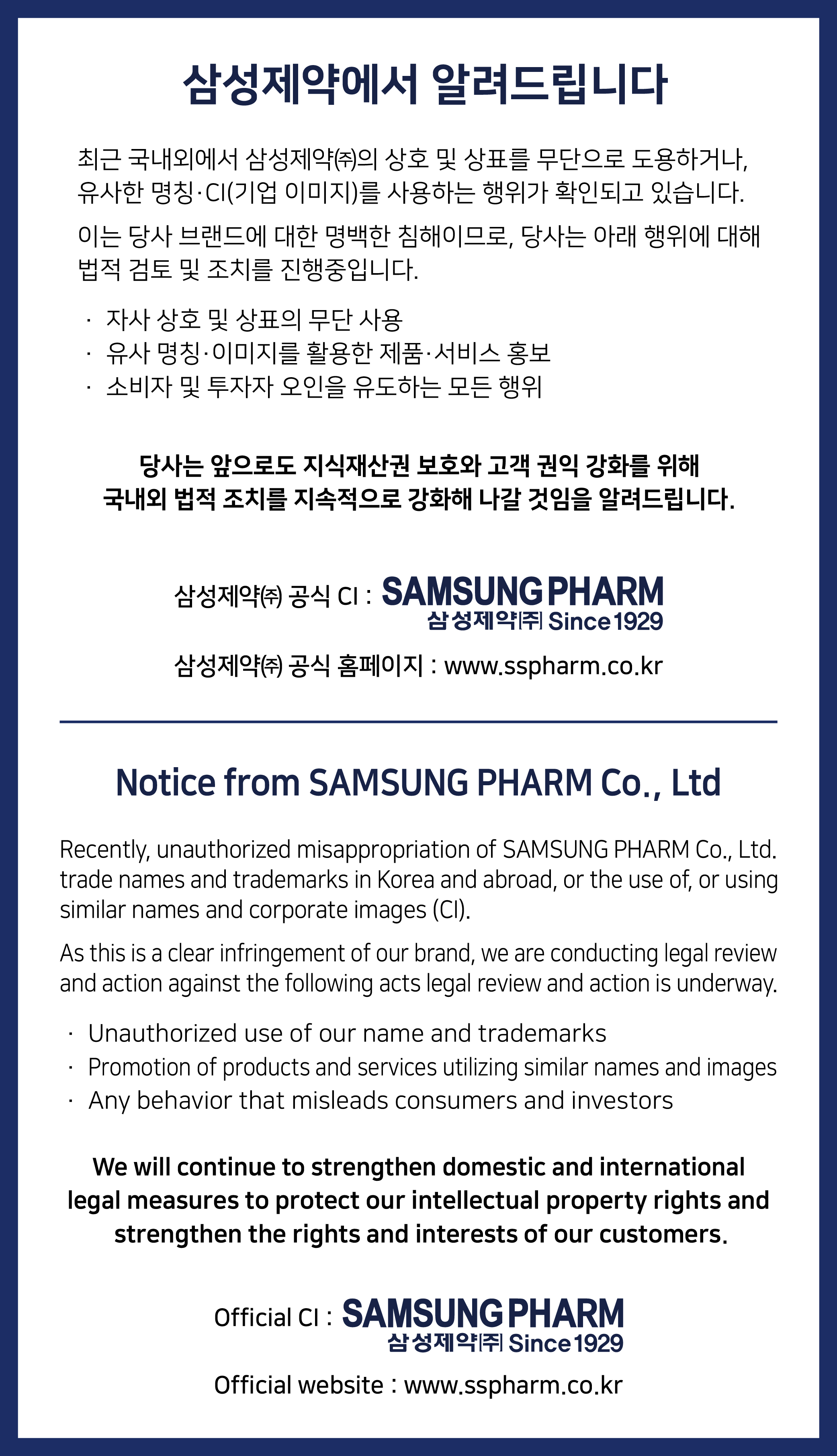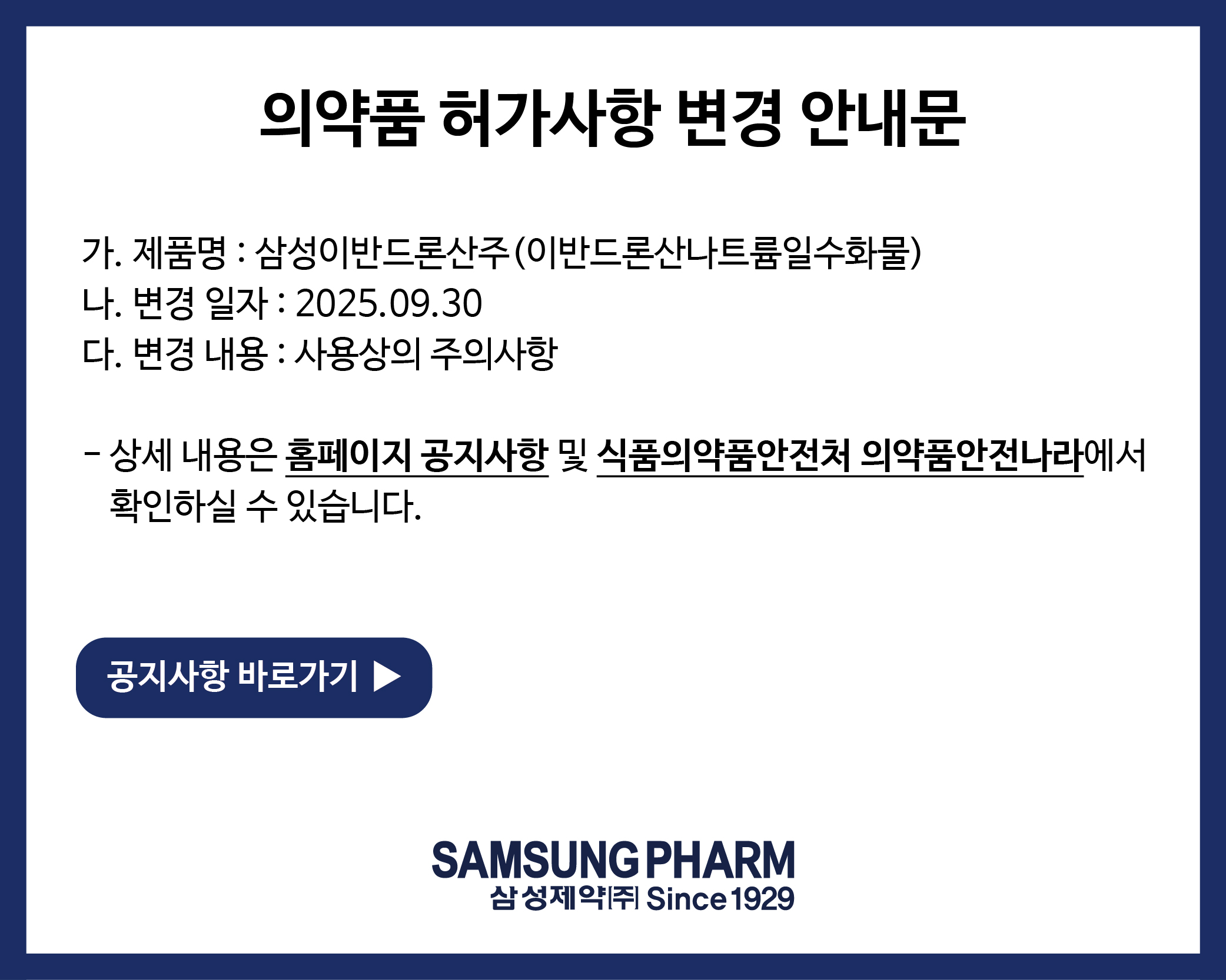 삼성제약(주) 의약품 공지사항을 안내드립니다.