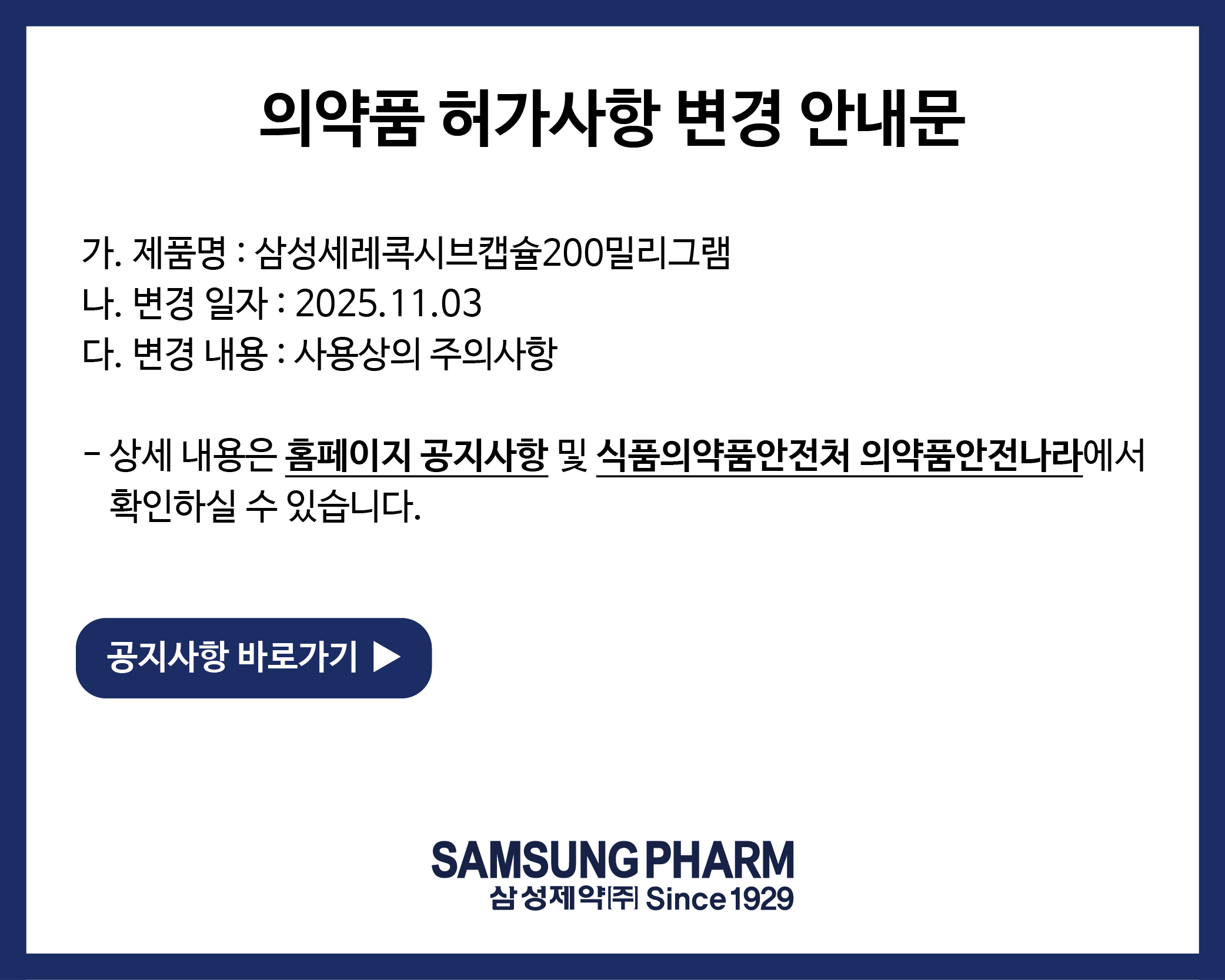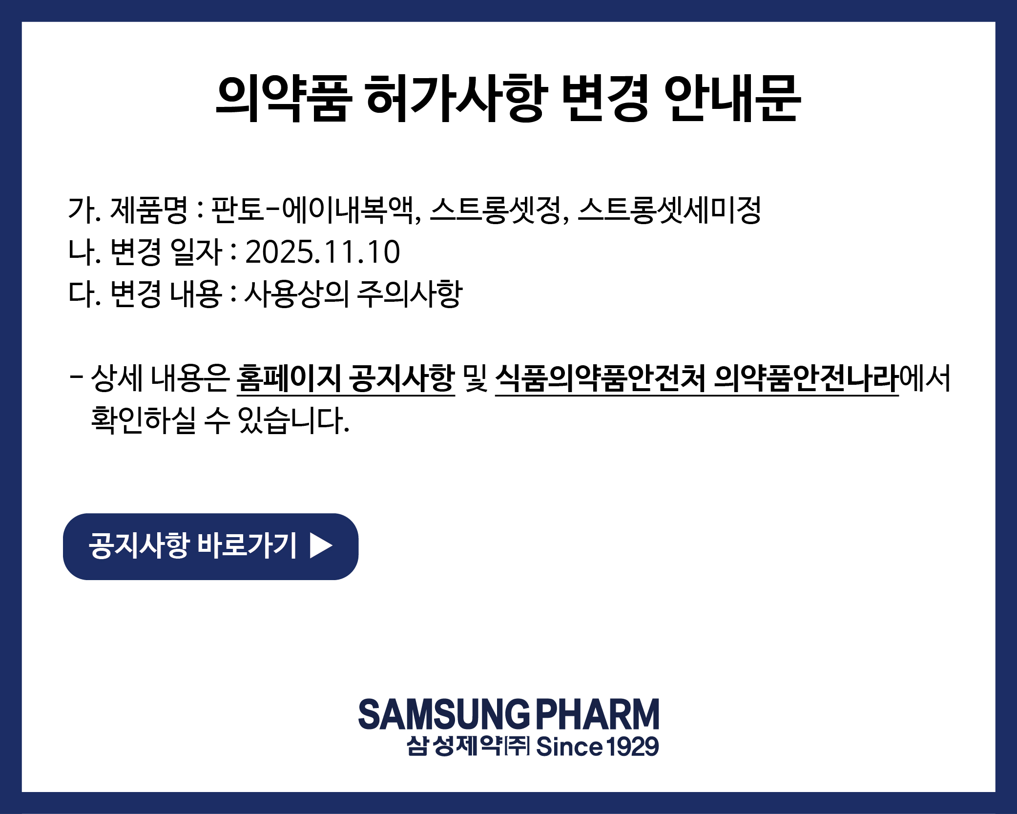 삼성제약(주) 의약품 공지사항을 안내드립니다.